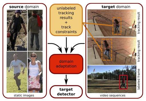 We also developed an extended method which can incorporate within domain instance constraints to learn more accurate transformations with little or no labeled target training data [4]. For example, tracking constraints could incorporated into the learning framework to make sure that images from the same track would be eventually classified similarly. |