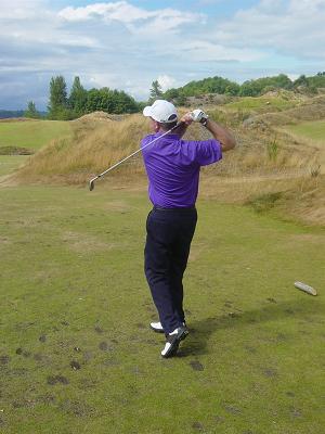 ![]() Tee shot on the 3rd hole at Chambers Bay. Actually, this is a photo-op re-swing moments after I made an ace there in August 2008.