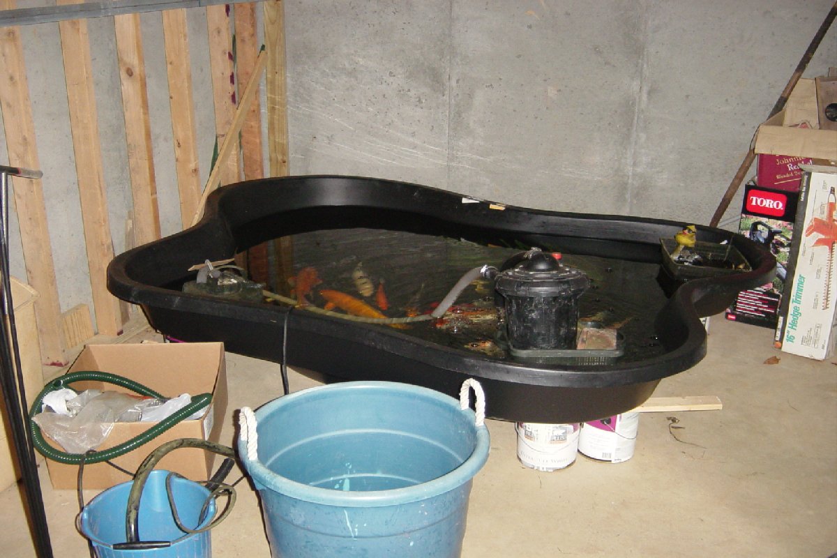 The fish's temporary home. We purchased an in-ground pond that holds 225
