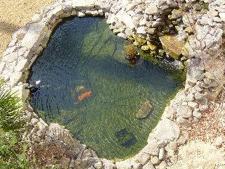 Top view of the old pond. There's a good view of some our fish here.