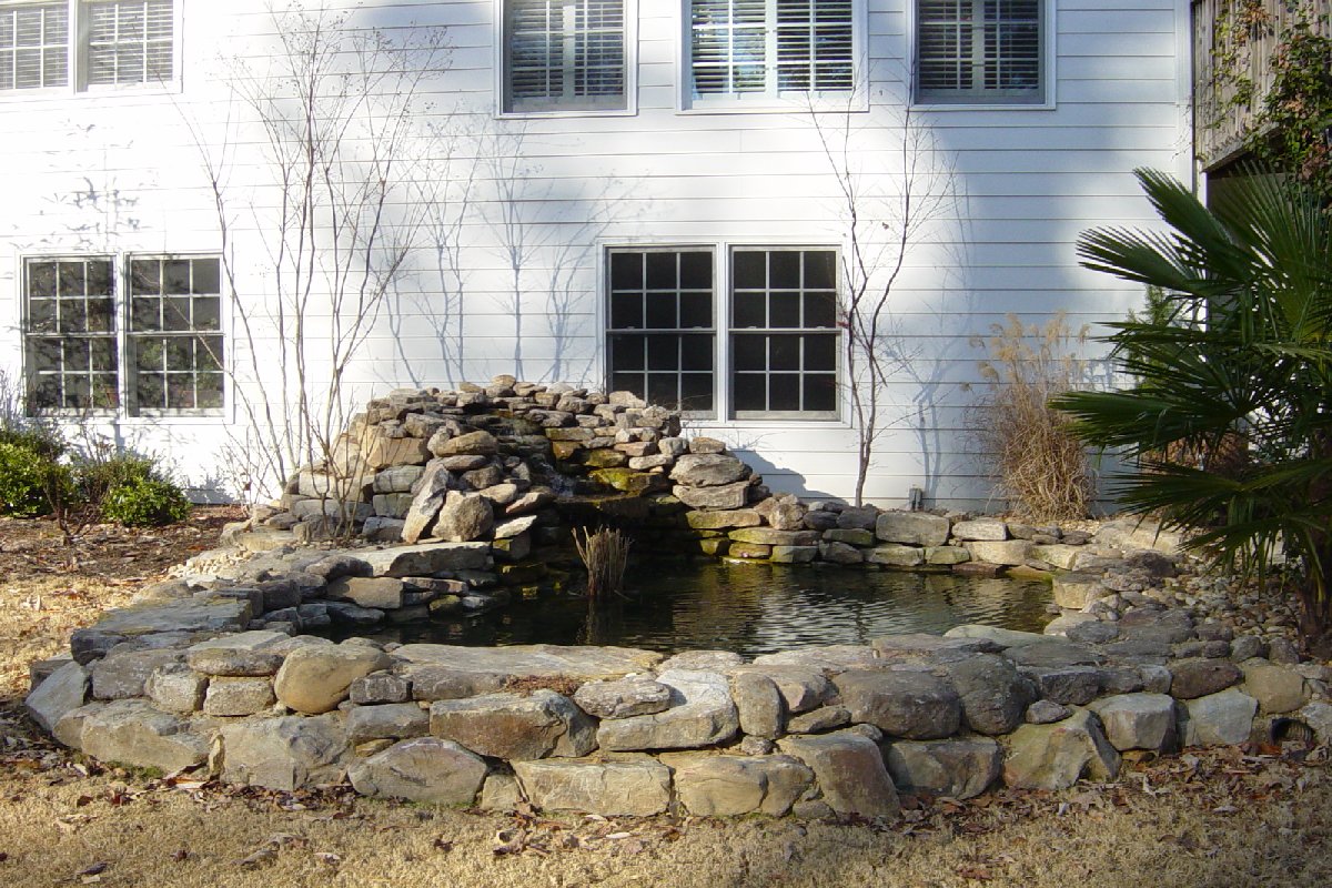 all that remains is finishing the small rock wall around the pond
