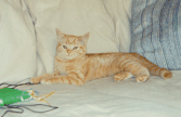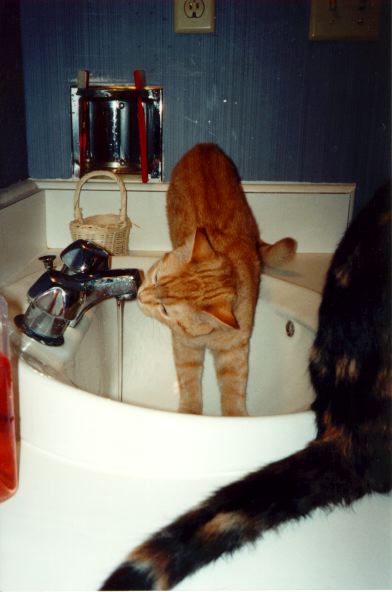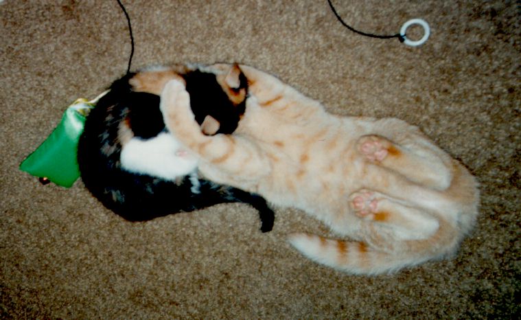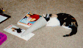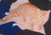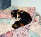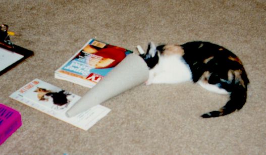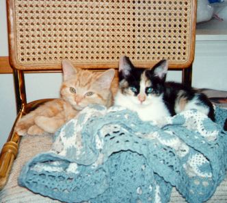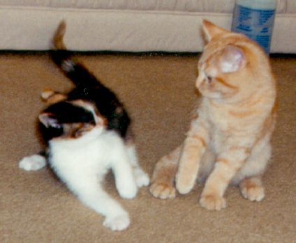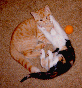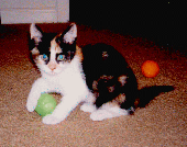 Citrus is the more mature of our kittens, both in age and in action. Most of the time she is the model of the demure cat. On rare occasions, however, she likes to demonstrate her atheletic prowess by clawing her way up the curtains and walking across the top rod. Her birthday is October 1, 1994.