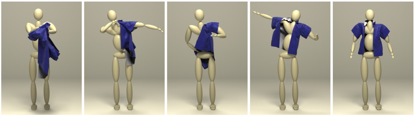 Dressing is one of the most common activities in human society. Perfecting the skill of dressing can take an average child three to four years of daily practice. The challenge is primarily due to the combined difficulty of coordinating different body parts and manip- ulating soft and deformable objects (clothes). We present a tech- nique to synthesize human dressing by controlling a human char- acter to put on an article of simulated clothing. We identify a set of primitive actions which account for the vast majority of motions observed in human dressing. These primitive actions can be as- sembled into a variety of motion sequences for dressing different garments with different styles. Exploiting both feed-forward and feedback control mechanisms, we develop a dressing controller to handle each of the primitive actions. The controller plans a path to achieve the action goal while making constant adjustments locally based on the current state of the simulated cloth when necessary. We demonstrate that our framework is versatile and able to animate dressing with different clothing types including a jacket, a pair of shorts, a robe, and a vest. Our controller is also robust to differ- ent cloth mesh resolutions which can cause the cloth simulator to generate significantly different cloth motions. In addition, we show that the same controller can be extended to assistive dressing.