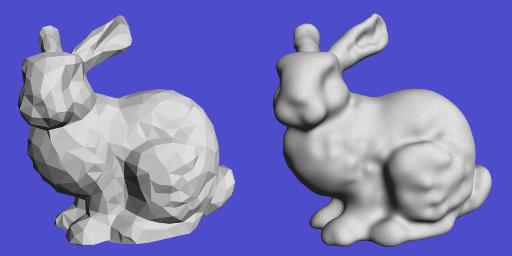 Polygonal mesh (left) and resulting implicit bunny (right).